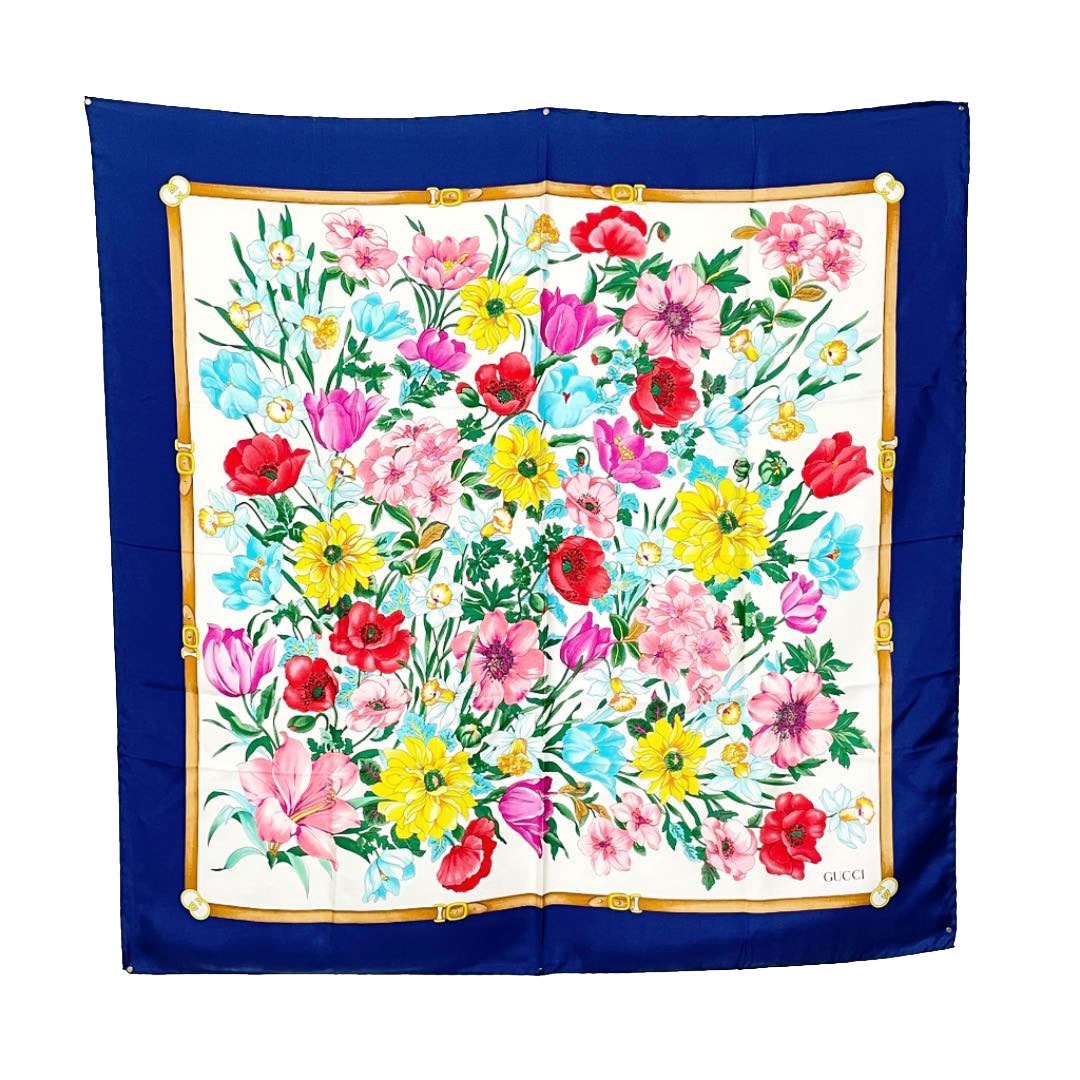 GUCCI グッチ スカーフ フローラ 花柄 シルク ネイビー ホワイト マルチカラー