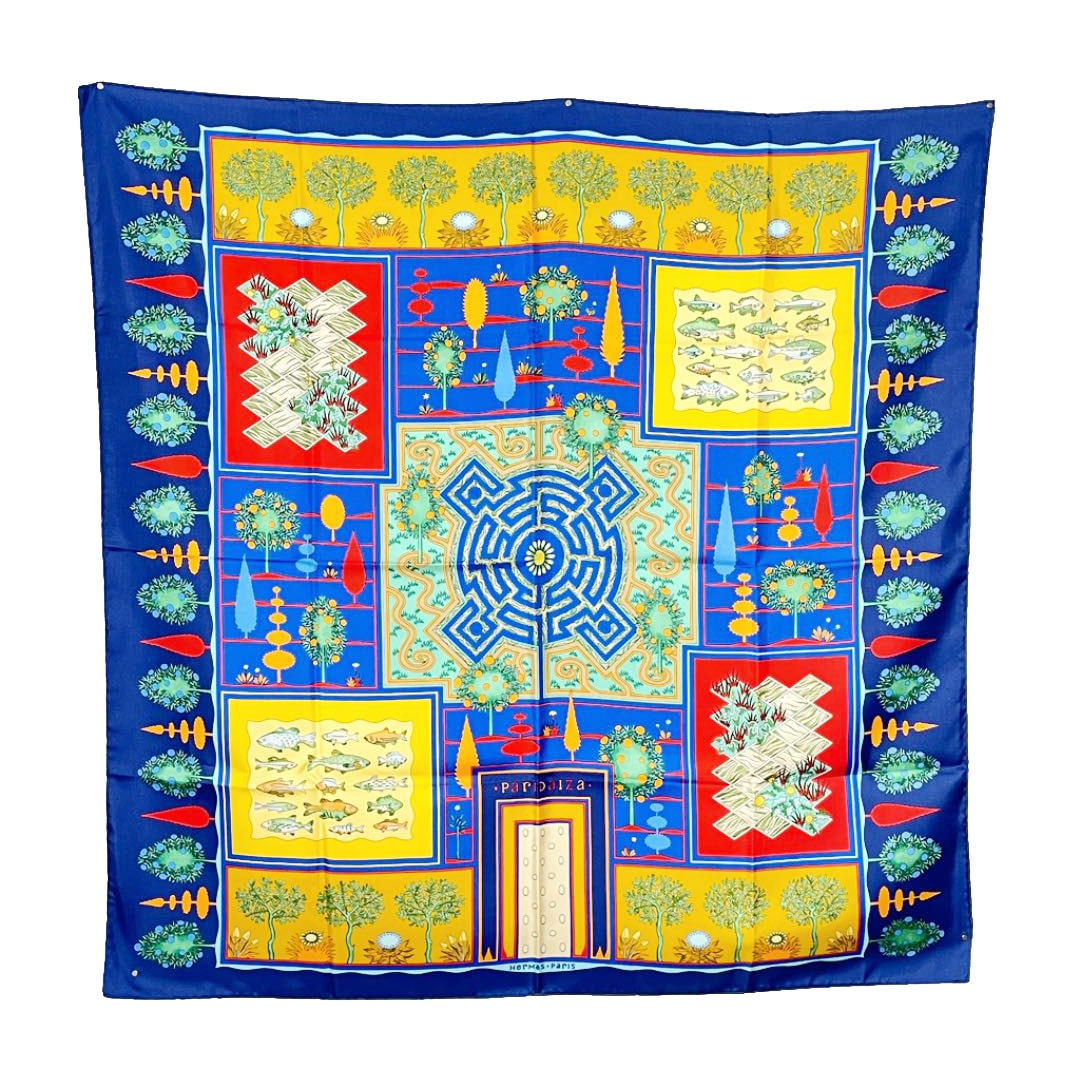 HERMES エルメス スカーフ カレ90 『Paridaiza(パラダイス)』 シルク ネイビー ブルー系マルチカラー