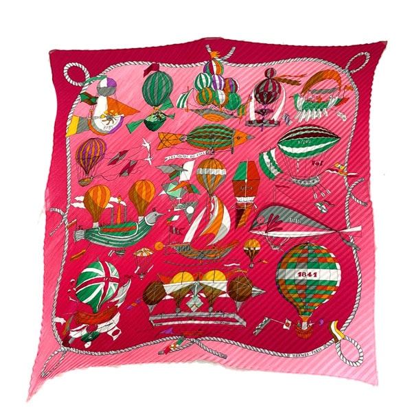 HERMES エルメス プリーツスカーフ 『PAZ UNIVERSAL(大気の狂気)』 シルク ピンク