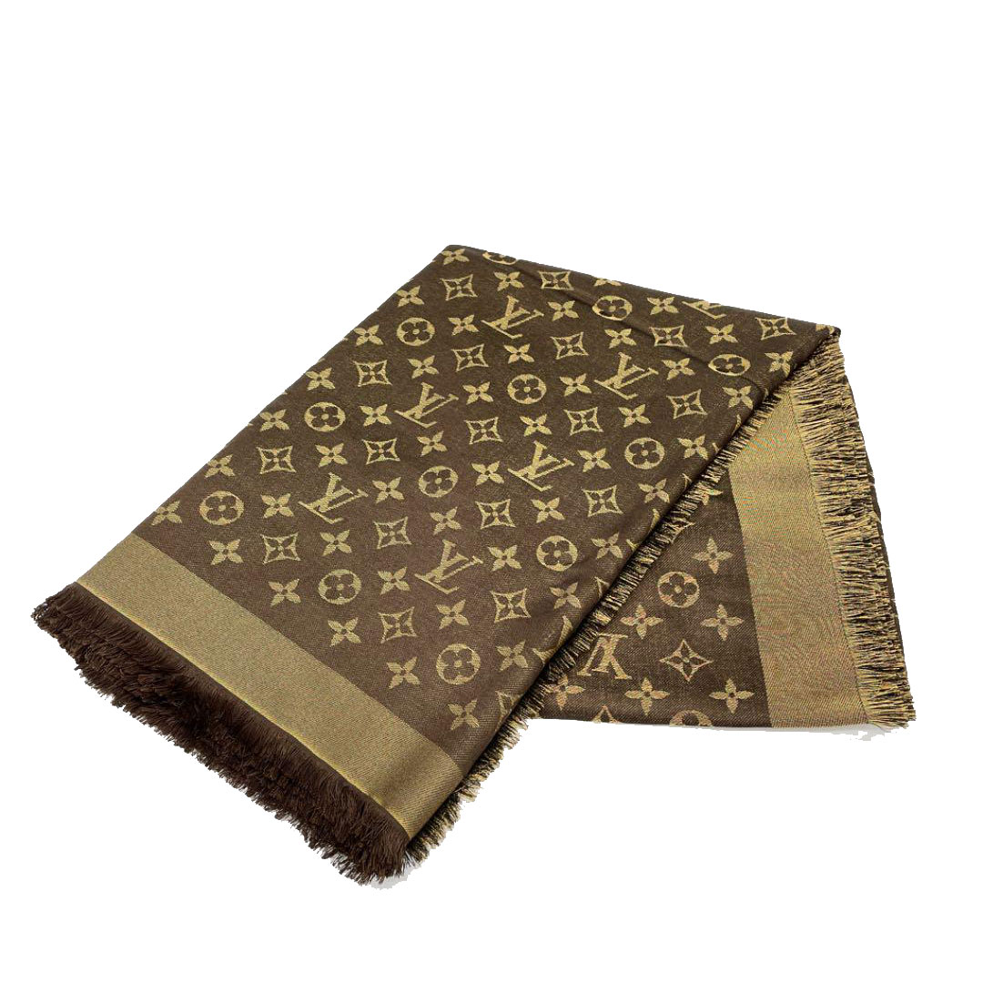 LOUIS VUITTON ルイヴィトン ショール・モノグラム シャイン マロン シルク ウール マロン(ブラウン/ゴールド系) ...