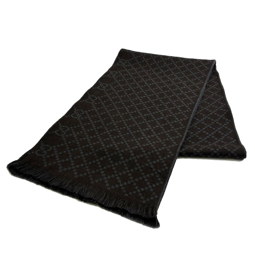 GUCCI グッチ マフラー ディアマンテ柄 ウール/シルク ブラウン/グレー イタリア製