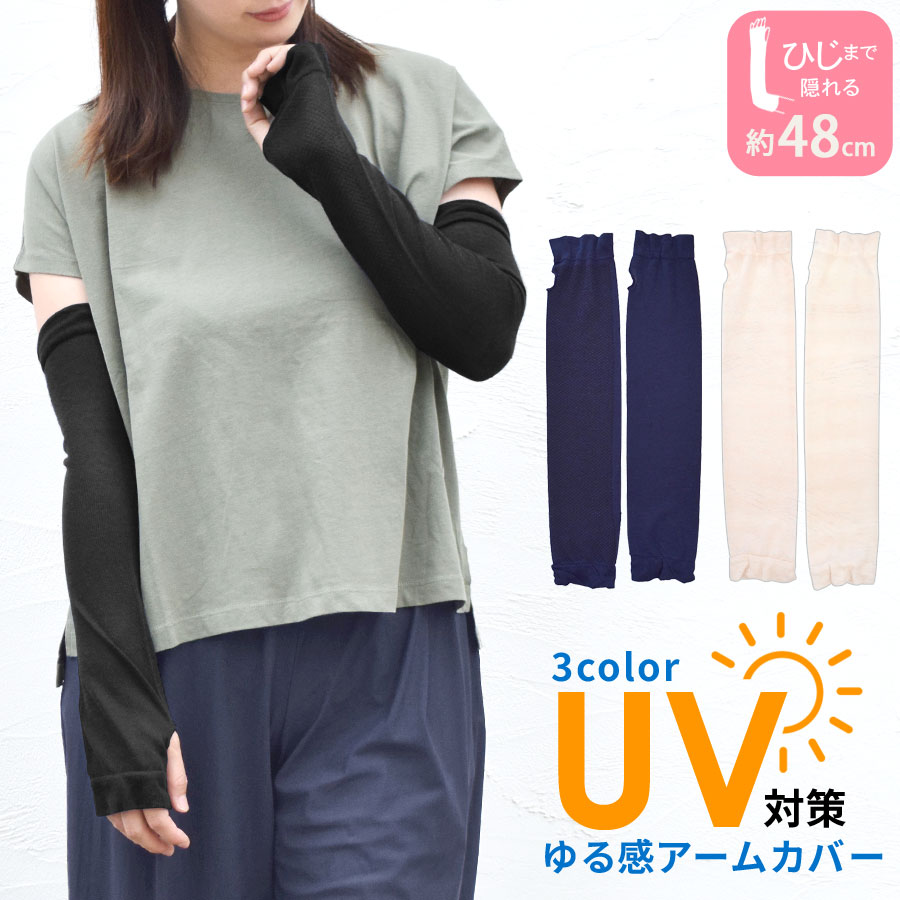 アームカバー レディース UV UVケア 指あり 指穴 内側メッシュ ロング 48cm スポーツ 日焼け対策 【送料pt100】