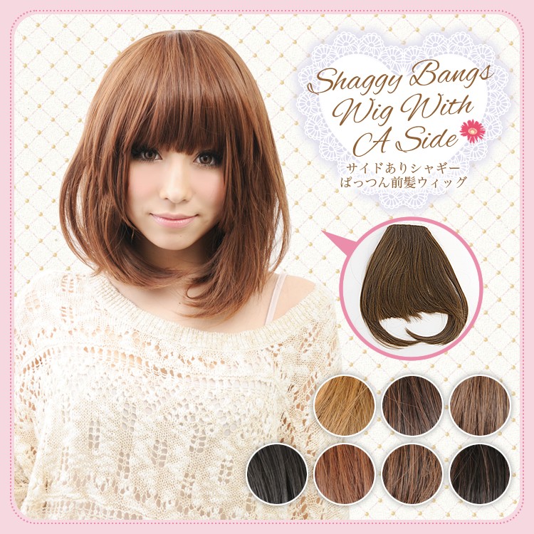 ポイントウィッグ ぱっつん前髪ウィッグ サイドありシャギー 7色バリエーション 耐熱ファイバー【Angeliqueアンジェリーク】