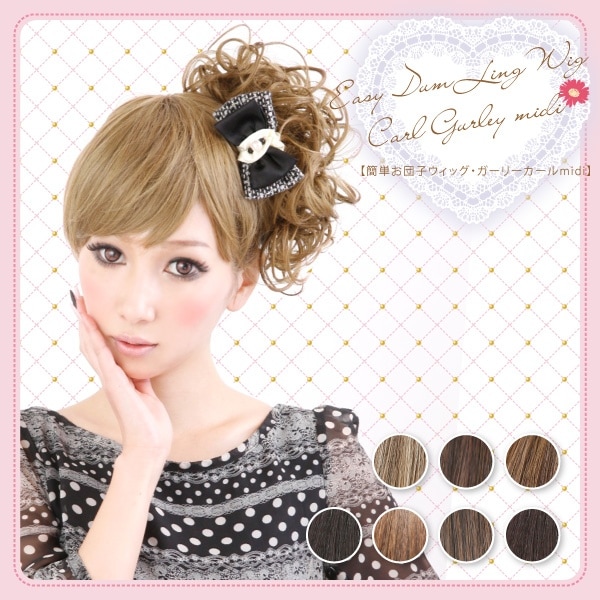 ポイントウィッグ 簡単お団子ウィッグ・ガーリーカールmidi 7色バリエーション 耐熱ファイバー【Angeliqueアンジェリーク...