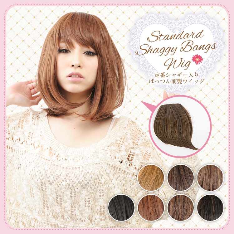ポイントウィッグ ぱっつん前髪ウィッグ 定番シャギー入り 7色バリエーション 耐熱ファイバー【Angeliqueアンジェリーク】