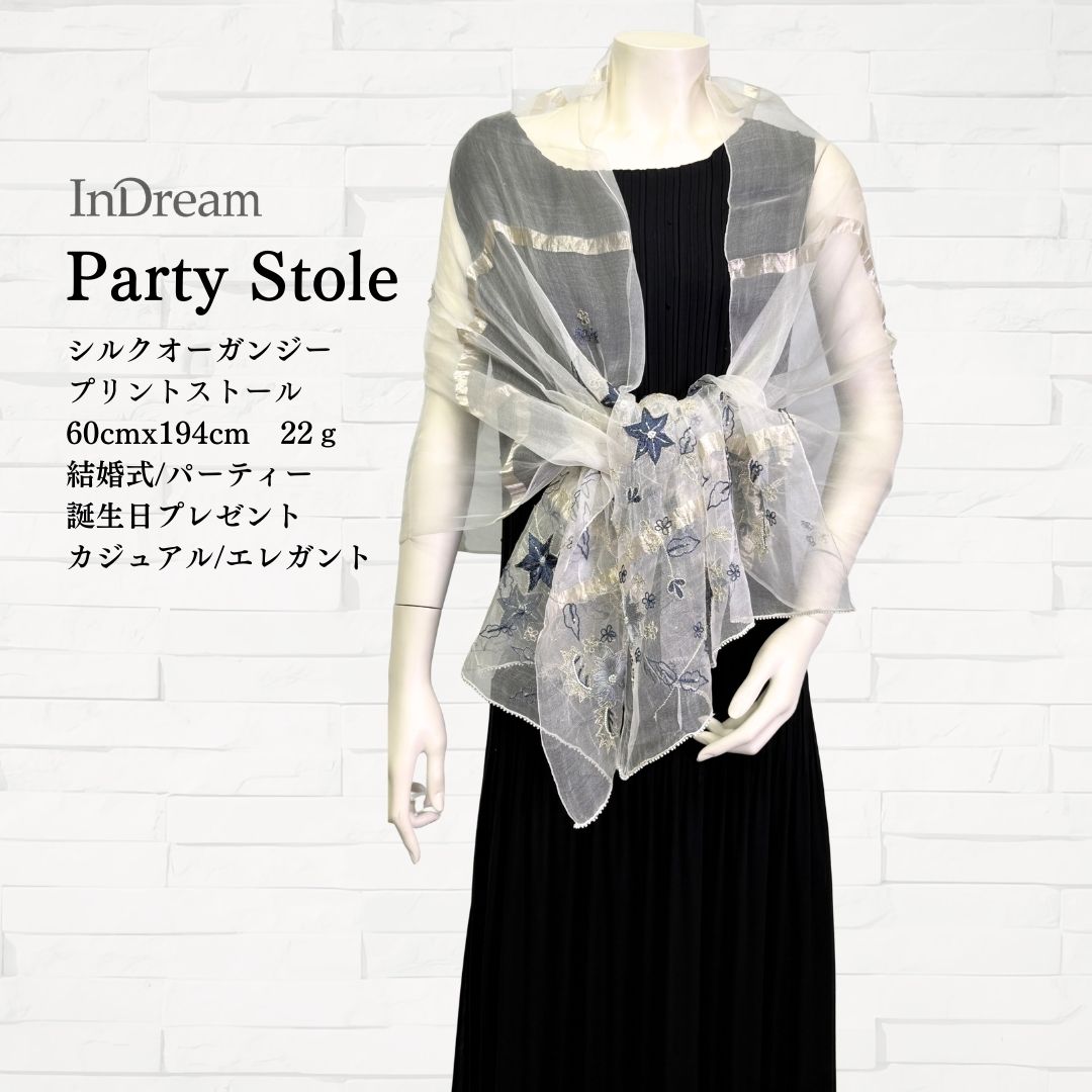 InDream シルク オーガンジー ストール ナチュラルホワイト ネイビー お祝い 結婚式 ストール パーティー 誕生日 プレゼ...