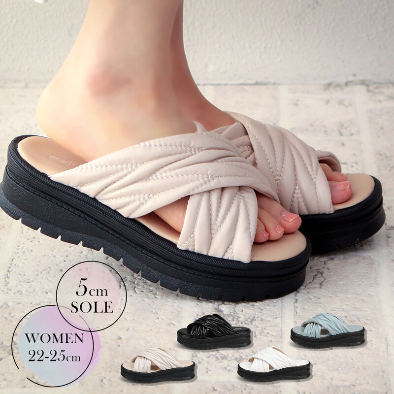 サンダル 厚底 ミュール レディース フラットサンダル クロスストラップ プラットフォーム おしゃれ 美脚 カジュアル 2008
