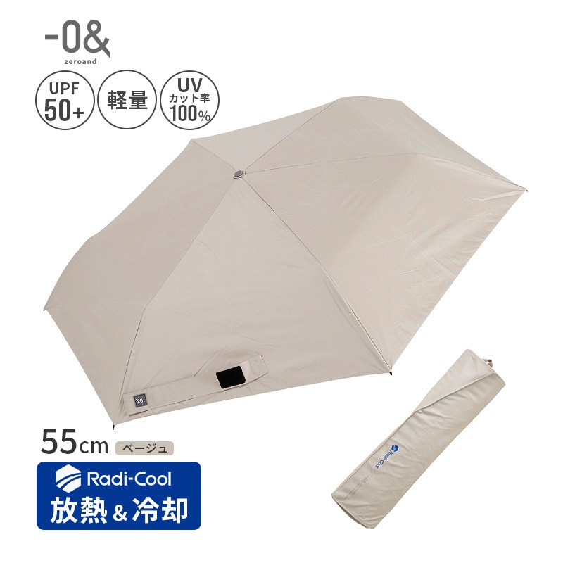 [52381] 軽量 折りたたみ傘 遮熱 熱を放出 -0& ラディクール 55cm ベージュ 晴雨兼用 Radi-Cool UVカ...
