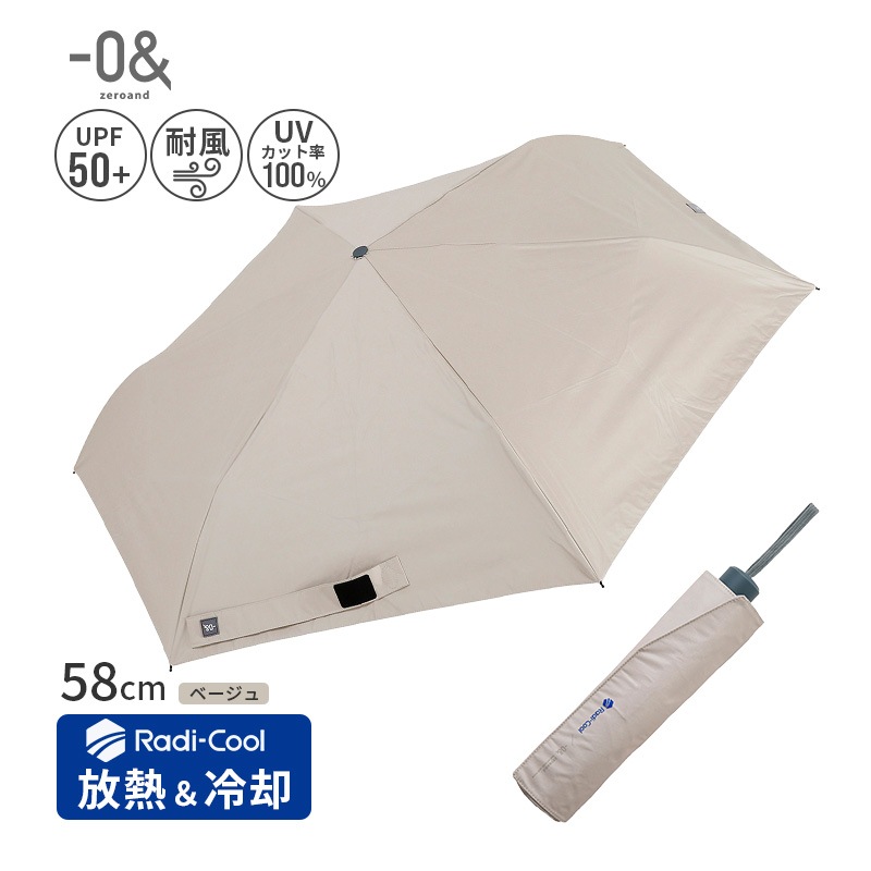 [52385] 3段 折りたたみ傘 遮熱 熱を放出 -0& ラディクール ワイド 58cm 耐風 ベージュ 晴雨兼用 Radi-C...
