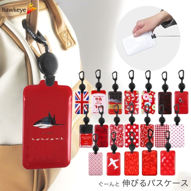 【レッドシリーズ/のびパス】光に反射する パスケース 伸びるリール付き 選べるデザイン|電車 バス 濡れない チャック 落下防止 ...