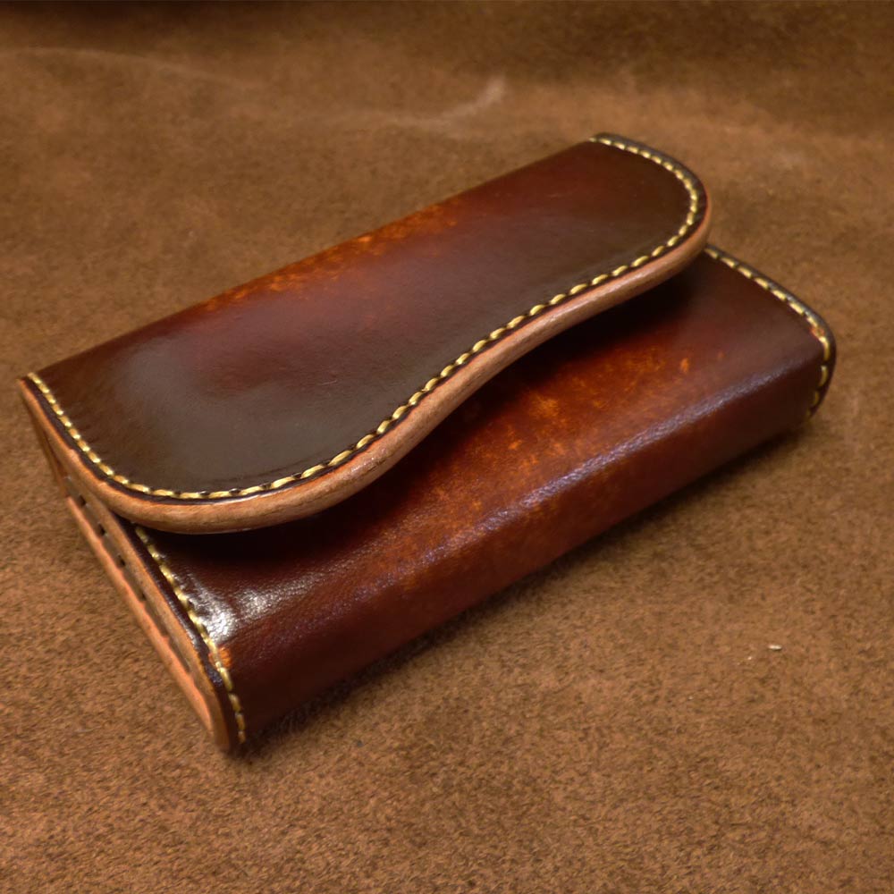 植物タンニン鞣し牛革(ヌメ革) 職人ぼかし手染め 六連レザーキーケース/革小物/ハンドメイド