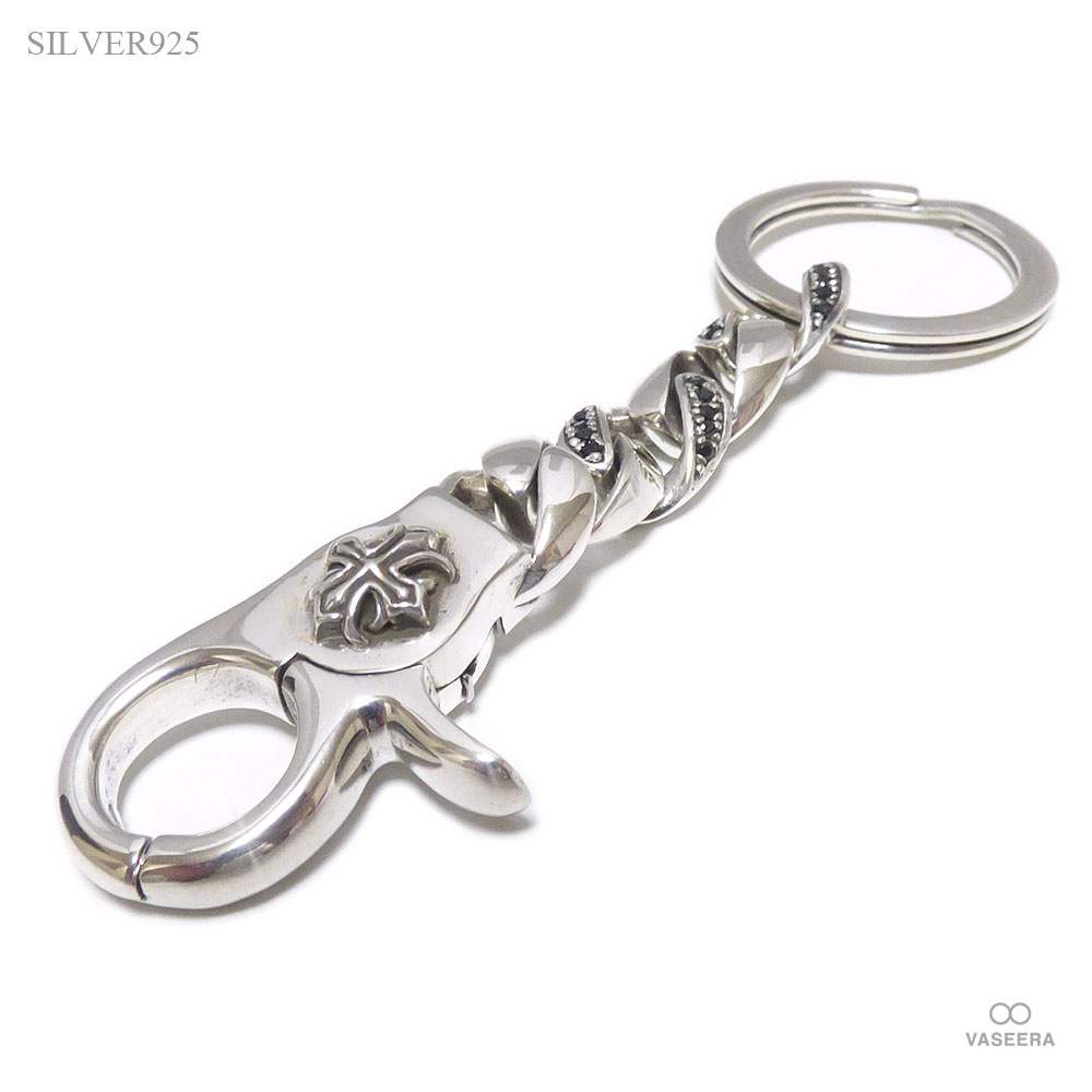【SILVER925】 クロス・ペイタンス レバーナスカン/カラビナ ブラックジルコニア チェーン キーホルダー 【シルバー92...