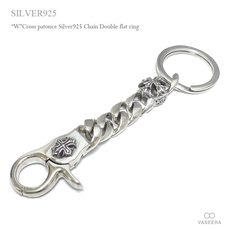 【SILVER925】\"W\"クロス・ペイタンス レバーナスカン(カラビナ) 喜平チェーン フラットダブルリング キーホルダー ...