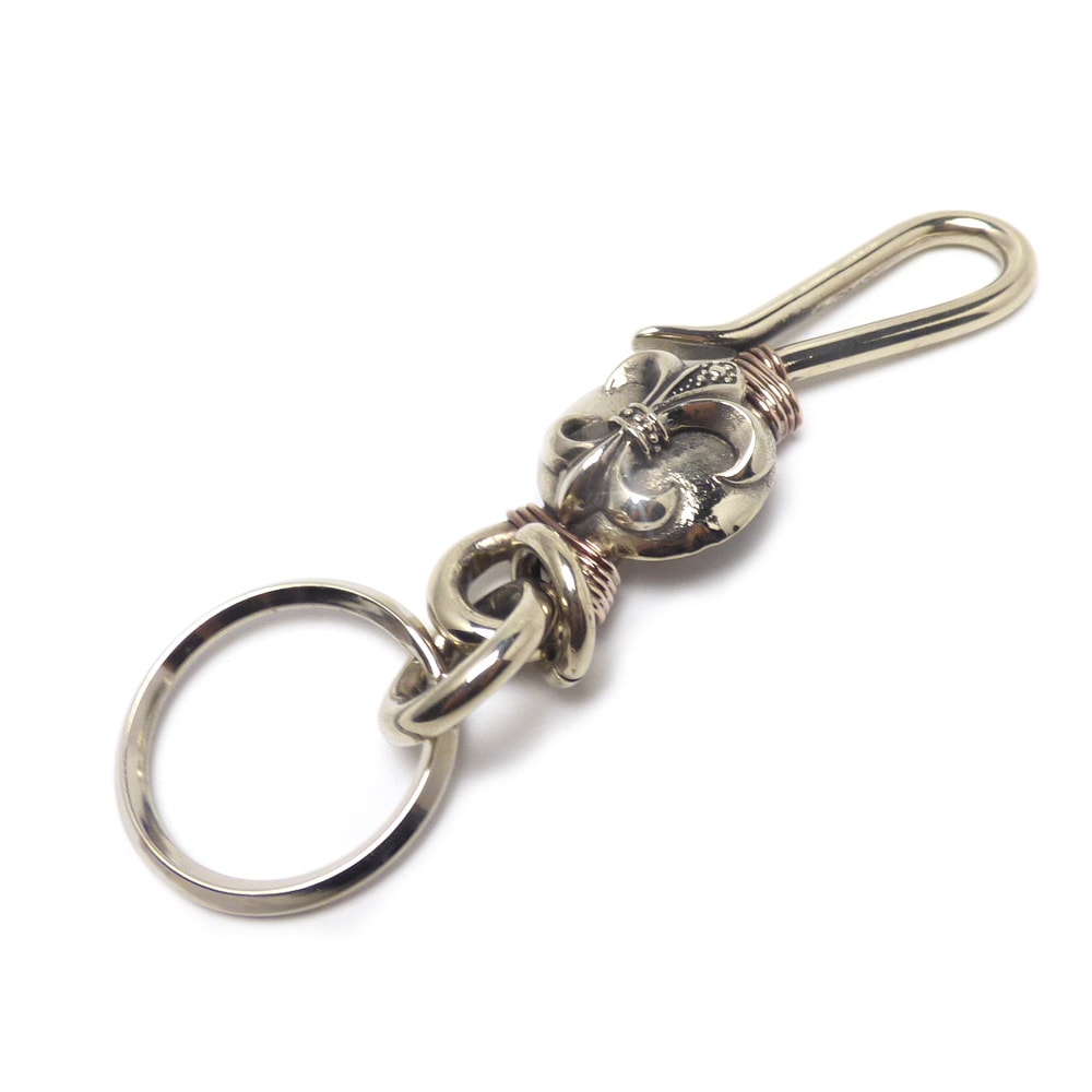 23mmユリ紋章コインデザイン 真鍮 シルバーコーティング(ニッケル仕上げ) ベルトフック 二重リング(二重カン)付き キーホル...