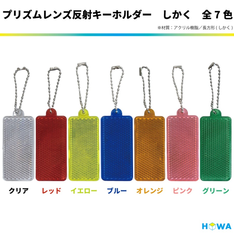 【2014NEW】プリズムレンズ型 反射キーホルダー モデル:しかく (長方形・千社札)全7色