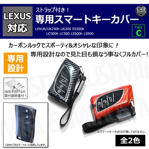 レクサス 専用 スマートキー カバー TypeC ストラップ付 レッド カーボン ブラック カーボン UX250h UX200 E...
