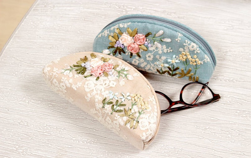 リボン刺繍 眼鏡ケース 約8×18cm [Florist]