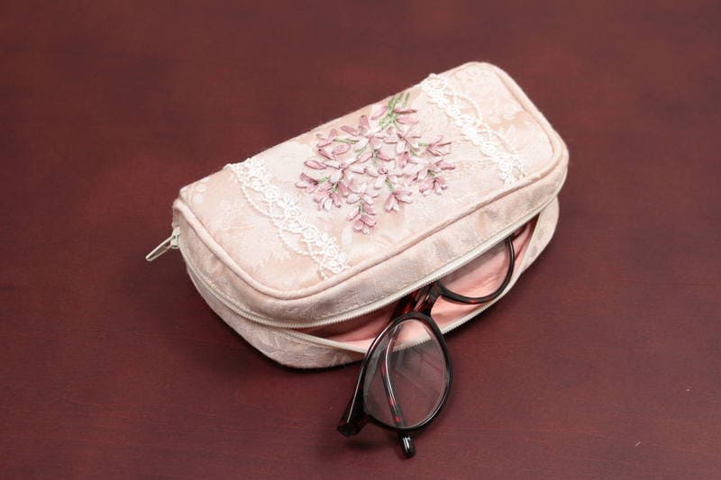 リボン刺繍 眼鏡ケース 約7.5×15.5×4cm [Florette]