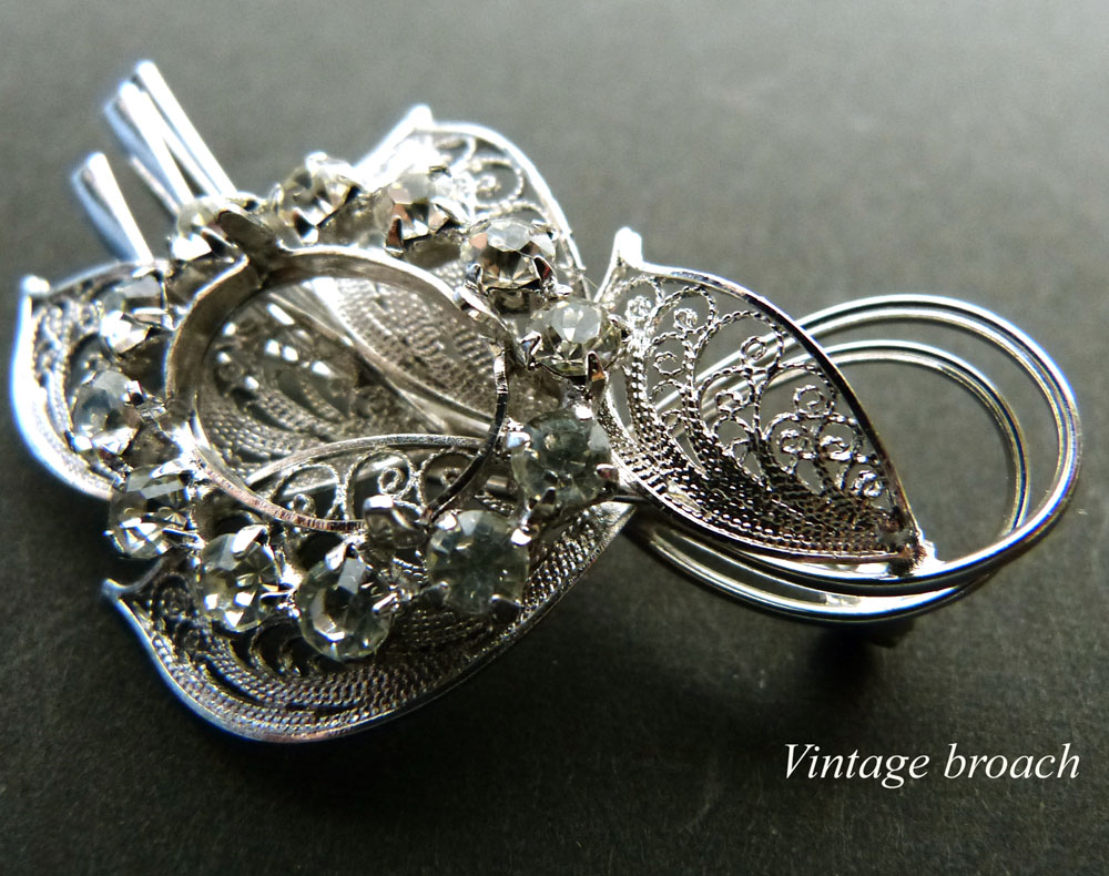 リーフ型のビンテージブローチ/コスチュームジュエリー【中古】【メール便対応】