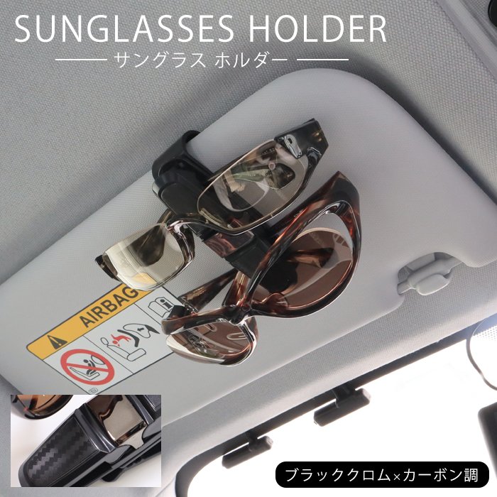 車用 サングラスホルダー クリップ ブラッククロム × カーボン調 1個 新品 サンバイザー メガネ 眼鏡 カード チケット カー...
