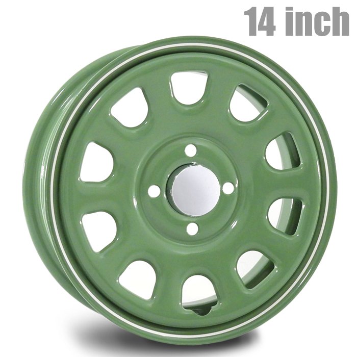 14インチ デイトナホイール 4本セット 【14×5.0J+42 4H PCD100 CB68】 アーミー グリーン ホワイト ...