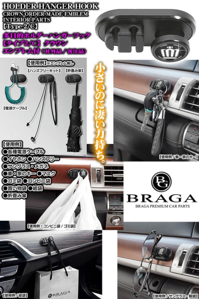 クロスオーバー/セダン/30系クラウン 王冠&ロゴ エンブレム付/客注品[タイプ1/C3]多目的 ホルダー ハンガー フック/ケ収...