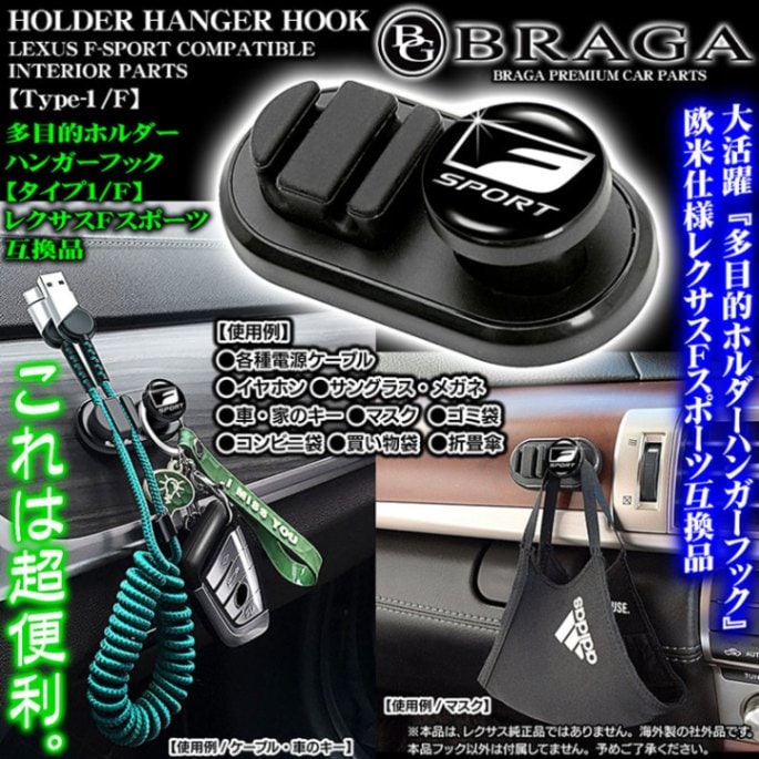 多目的ホルダーハンガーフック/レクサスFスポーツ互換品Fスポーツ エンブレム付/客注品【タイプ1/F】ケーブル マスク 鍵 眼鏡 ...