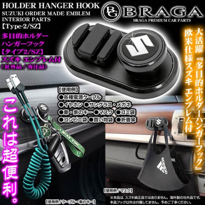 スイフト/ソリオ/ランディ/多目的ホルダーハンガーフック/スズキマークエンブレム付/客注品/【タイプ2/SZ】ケーブル マスク 鍵...