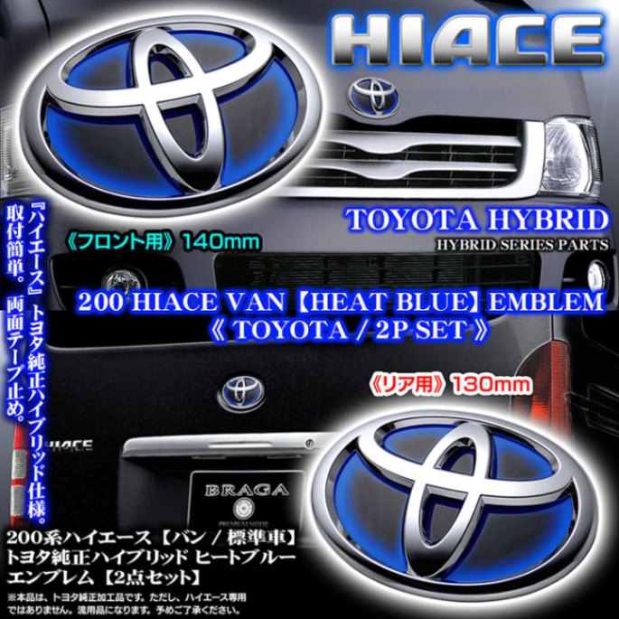 200系ハイエース/バン標準車【ヒートブルー/2点セット】トヨタTマーク・トヨタ純正流用ハイブリッド エンブレム/取付け簡単!両面...