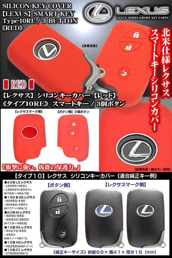 【タイプ10RD】レクサス シリコン キーカバー《レッド》/スマートキー3個ボタン/マーク用穴付/傷防止,キズ隠し,保護/北米仕様...