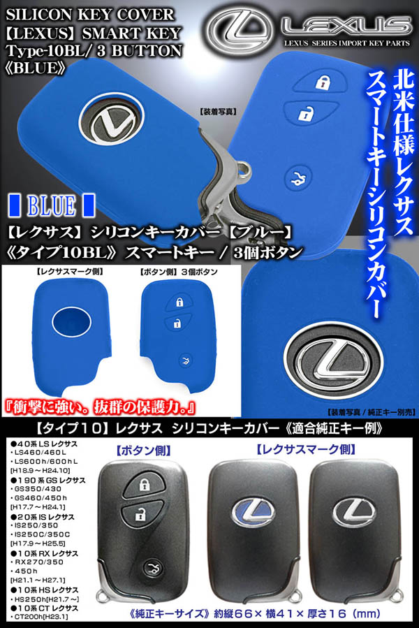【タイプ10BL】レクサス シリコン キーカバー《ブルー》/スマートキー3個ボタン/マーク用穴付/傷防止,キズ隠し,保護/北米仕様...