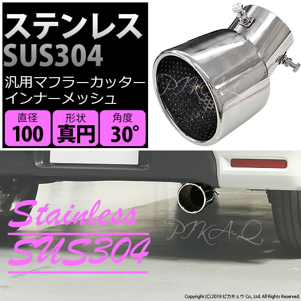 【即納】ステンレスSUS304 汎用マフラーカッター φ100 真円 インナーメッシュ 曲げ角度30度