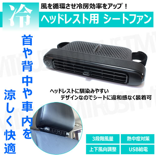 ヘッドレスト 用 シートファン 3段階風量 上下風向き調整 取付簡単 熱中症 対策 USB給電【扇風機 サーキュレーター ファン ...