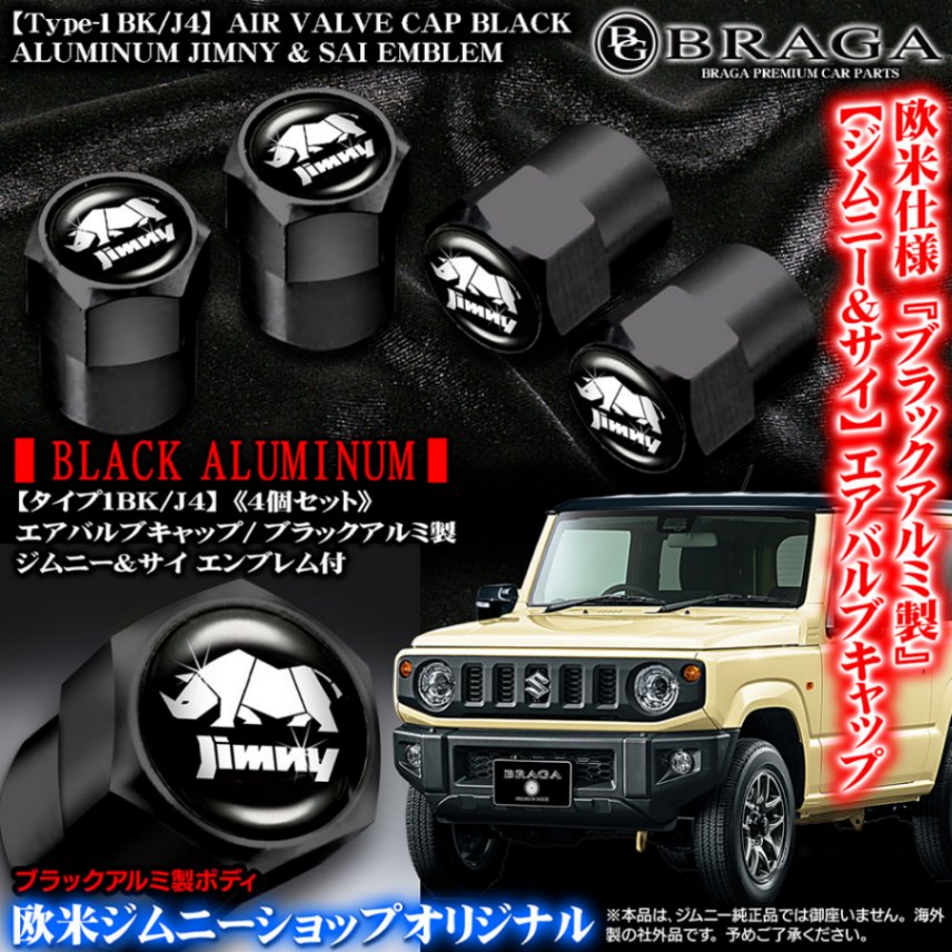 ノマド/シエラ【タイプ1BK/J4】ジムニー&サイ マーク エンブレム付 ブラック アルミ製/エア バルブ キャップ 4個入/海外...