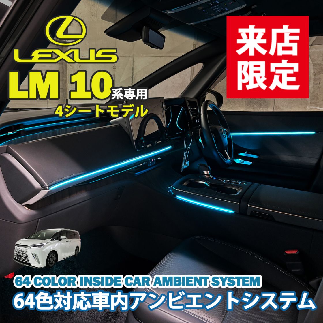 6月限定 来店取付工賃込 レクサス LM10系(4人乗り)用 64色対応車内アンビエントシステム基本セット LEXUS LM500...