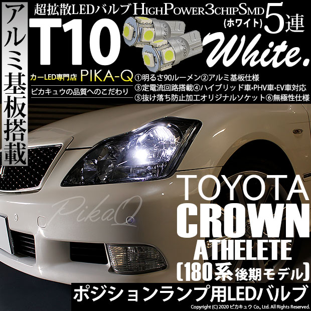 【即納】【メール便可】トヨタ クラウンアスリート [180系 後期]対応 ポジションランプ用LED T10 3chip HYPER...