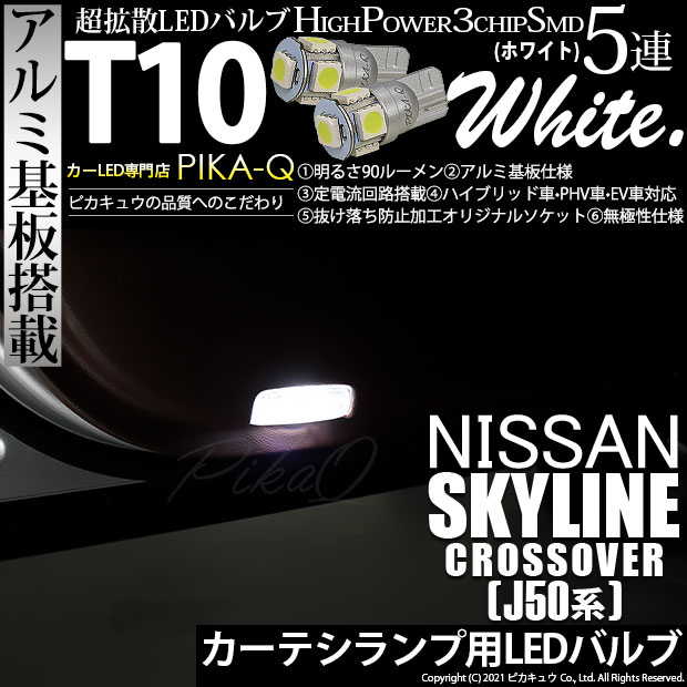 【即納】【メール便可】ニッサン スカイラインクロスオーバー[J50系]対応 カーテシランプ用LED T10 3chip HYPER...