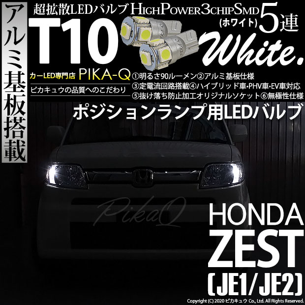 【即納】【メール便可】ホンダ ゼスト[JE1/JE2]対応 ポジションランプ用LED T10 3chip HYPER SMD 5連...