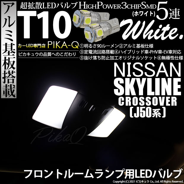 【即納】【メール便可ニッサン スカイラインクロスオーバー[J50系]対応 フロントルームランプ用LED T10 3chip HYP...