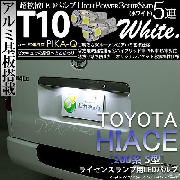 【即納】【メール便可】トヨタ ハイエース[200系 5型]対応 ライセンスランプ用LED T10 3chip HYPER SMD ...