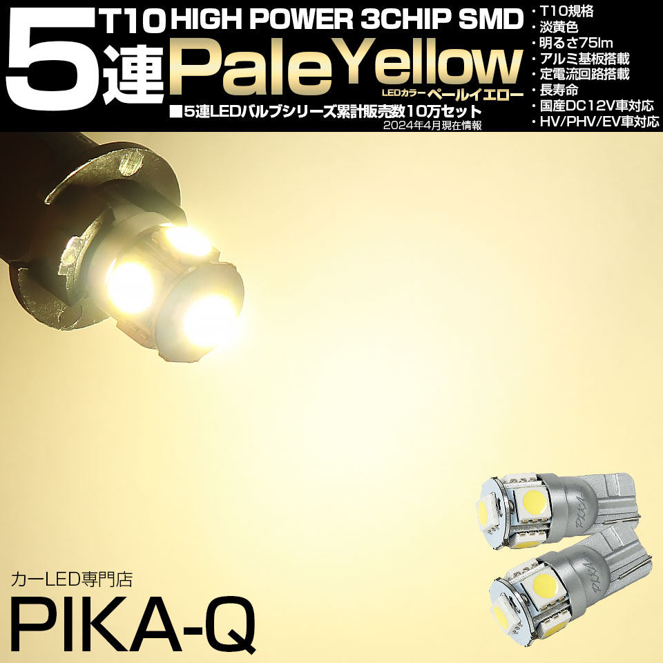 【即納】【メール便可】T10 3chip HYPER SMD 5連 ウェッジシングル LEDカラー:ペールイエロー 無極性 1セッ...