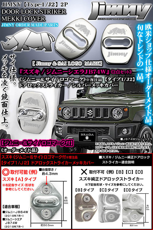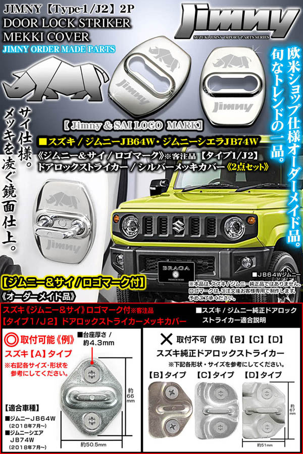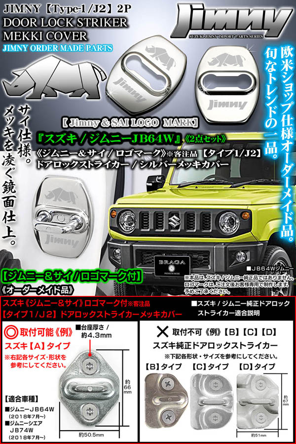 [タイプ1/J2]JB64Wジムニー【ジムニー&サイ/ロゴマーク付/客注品】2点セット/ドアロック ストライカーカバー[シルバーメ...