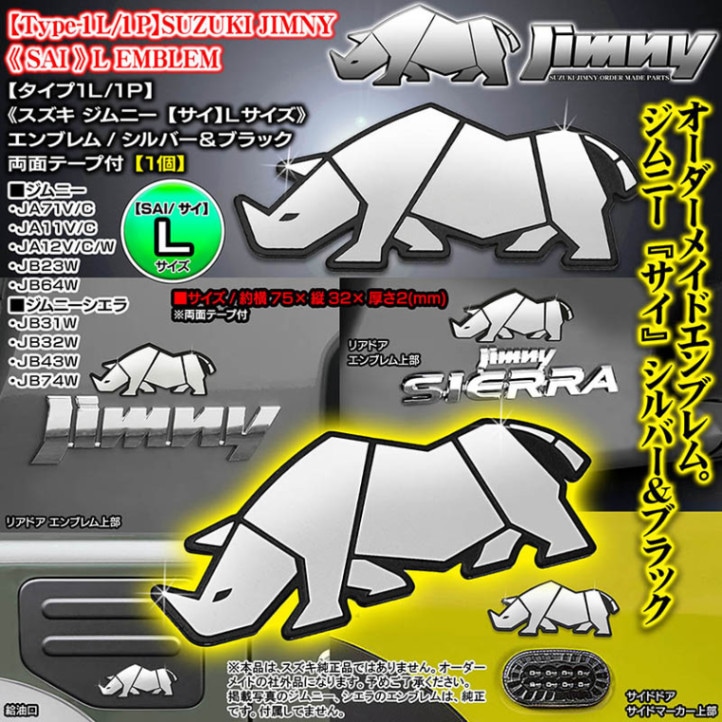 [サイ エンブレム/Lサイズ/客注品/1個]JB23W/64W,JA11/12スズキ ジムニー[タイプ1L/1P]シルバー&ブラッ...