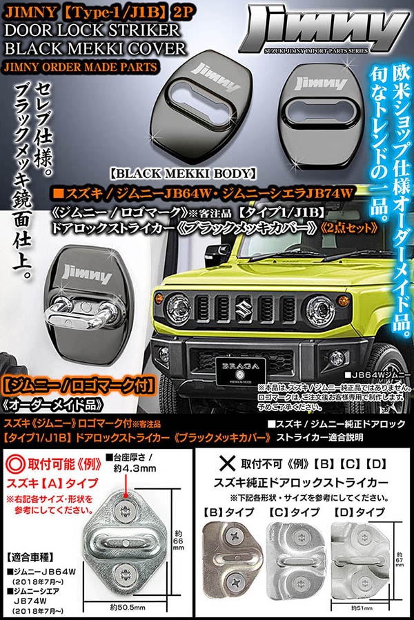 JB64Wジムニー【タイプ1/J1】[ジムニー/ロゴマーク付/客注品]2点セット/ドアロック ストライカー《メッキカバー》鏡面仕上...