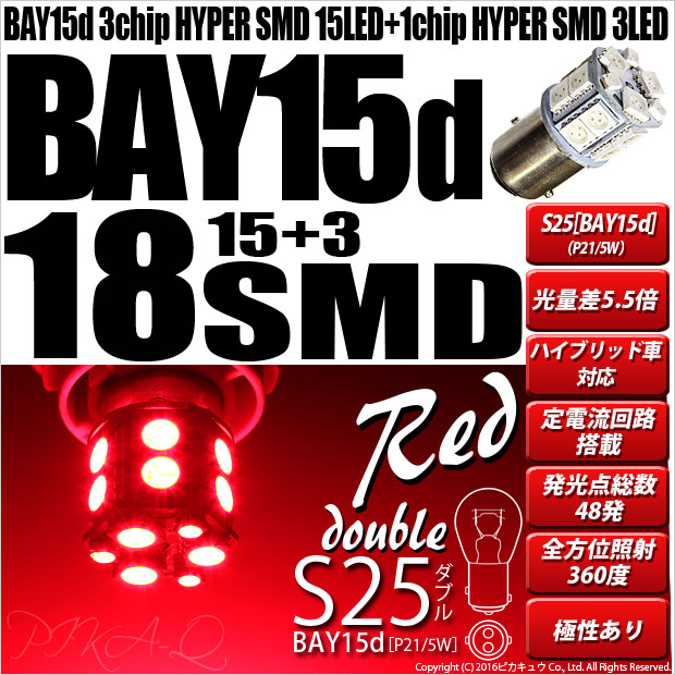 【即納】【メール便可】S25d[BAY15d]3chip HYPER SMD18連 ダブル口金球 段違いピン/ピン角180° LE...