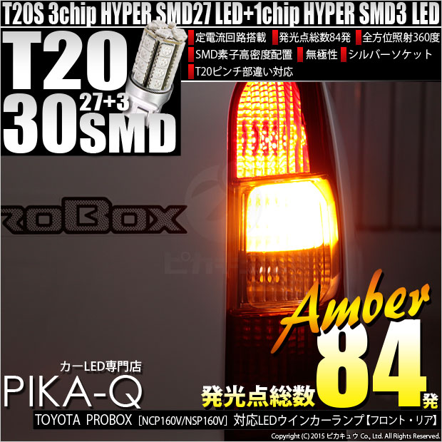 【即納】【メール便可】トヨタ プロボックス[NCP/NSP160系]対応 ウインカーランプ(フロント・リア)用LED T20s 3...