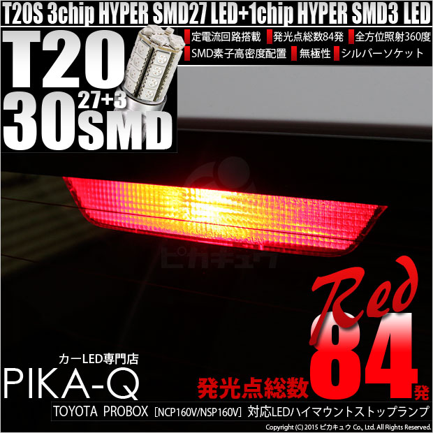 【即納】【メール便可】トヨタ プロボックス[NCP/NSP160系]対応 ハイマウントストップランプ用LED T20s 3chip...