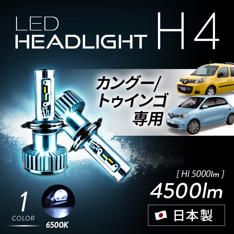 カングー2/トゥインゴ用LEDバルブ H4 Lo:6500K Hi:6500K ルーメン(Lo:4500lm,Hi:5000lm)