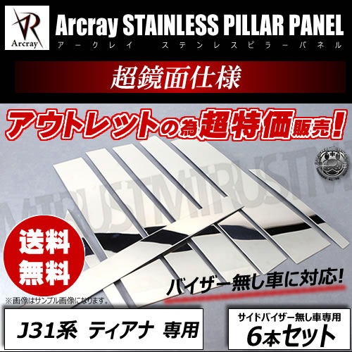 アウトレット アークレイ Arcray バイザー無し用■R加工済■鏡面ステンレスメッキピラー 6P■ティアナ J31系 対応■鏡面...
