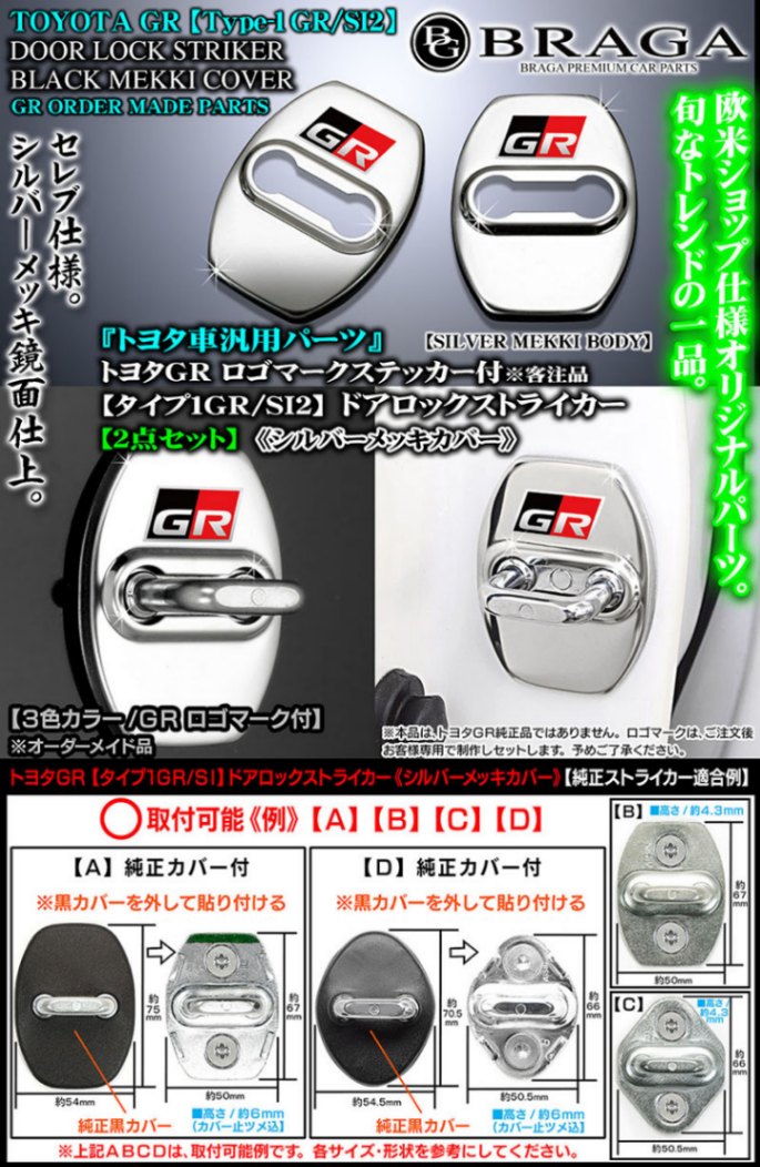 《2点セット》3色GRロゴマーク付【タイプ1GR/SI2】客注品[トヨタ車汎用]ドアロック ストライカー カバー《シルバーメッキ》...